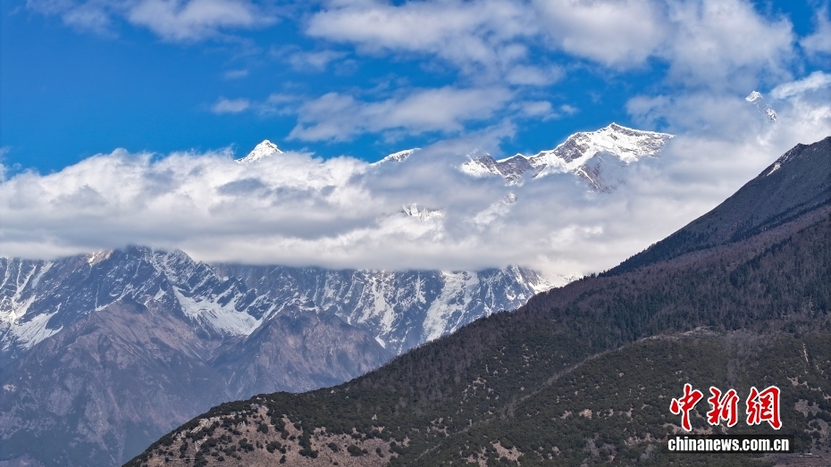 航拍位于西藏自治區(qū)林芝市境內(nèi)的南迦巴瓦峰。雅魯藏布大峽谷全長(zhǎng)504.6公里,最深處6009米,被認(rèn)為是世界上長(zhǎng)度最長(zhǎng)、深度最深的大峽谷。(無(wú)人機(jī)照片)中新社記者 馬銘言 攝