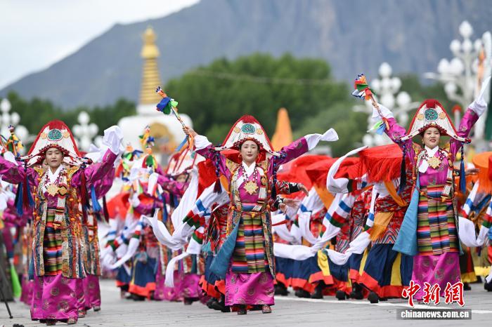 8月21日,西藏自治區(qū)成立60周年慶祝大會(huì)中的游行表演。貢嘎來(lái)松 攝