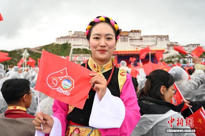 8月21日,青年律師次仁卓瑪在布達(dá)拉宮廣場(chǎng)參加慶祝活動(dòng)。中新社記者 趙朗 攝