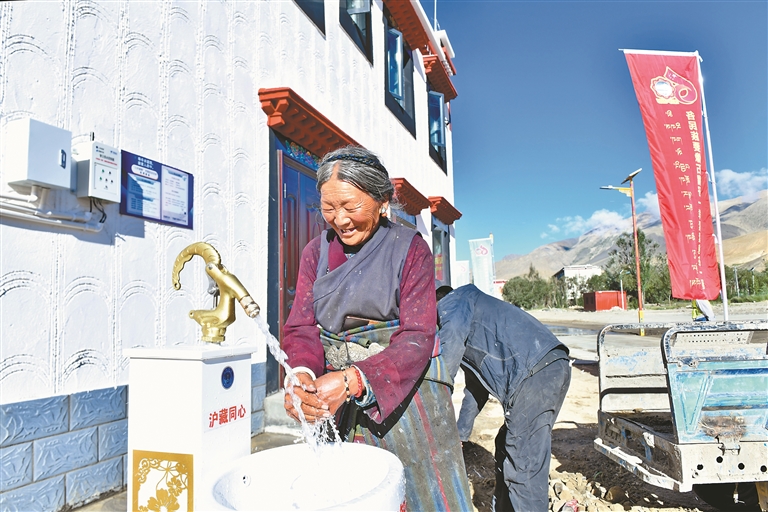 8月7日,拉姆一家分到一棟110平方米的新房。當她擰開锃亮的水龍頭,熱水涌出的瞬間,淚水奪眶而出:“以前兒子沒法在家里洗澡,現(xiàn)在能了,特別開心?!边@簡單的心聲,道出森嘎村600多名村民共同的喜悅。