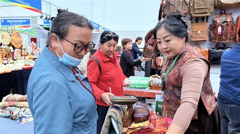 展會現(xiàn)場人頭攢動,熱鬧非凡。150家參展商帶來的特色產(chǎn)品鋪滿了各個展位,空氣中彌漫著多元氣息。法國紅酒的醇厚酒香、印度尼西亞咖啡的濃郁焦香、伊朗藏紅花的獨特芬芳交織在一起,與西藏本土青稞制品的麥香、高原蜂蜜的甜香相互映襯。在巴基斯坦展位前,參展商Asif正熱情地向顧客展示手工羊毛地毯,“我已經(jīng)連續(xù)三年參加,之前銷量都很好,這次帶來的地毯紋樣融入了藏式元素,希望能更受歡迎。”