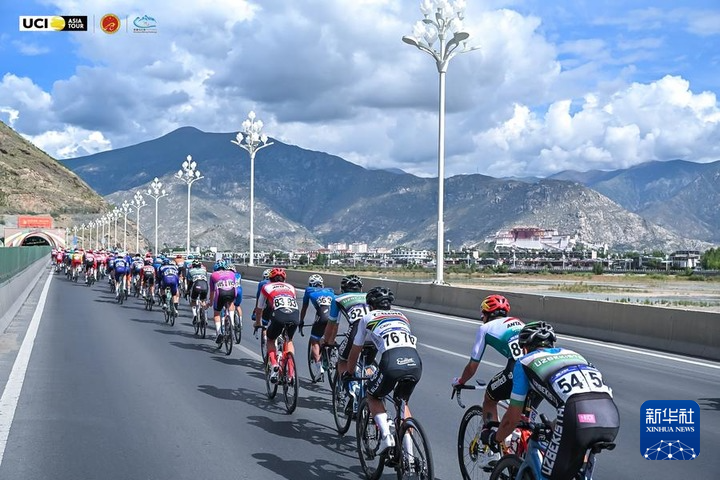 2025中國西藏第六屆跨喜馬拉雅國際公路自行車極限賽,選手在第三階段拉薩站比賽中。(主辦方供圖)