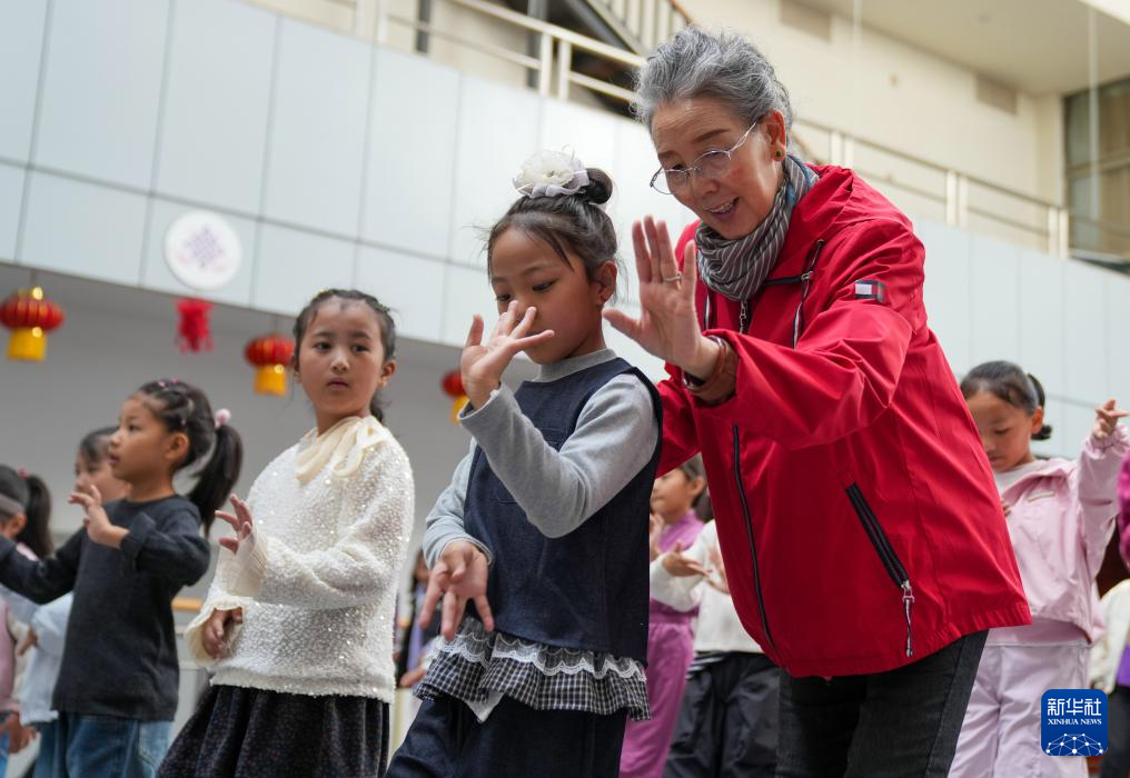 9月14日,巴桑老師在西藏自治區(qū)群藝館帶領(lǐng)孩子們學(xué)習(xí)藏戲表演。新華社記者 晉美多吉 攝