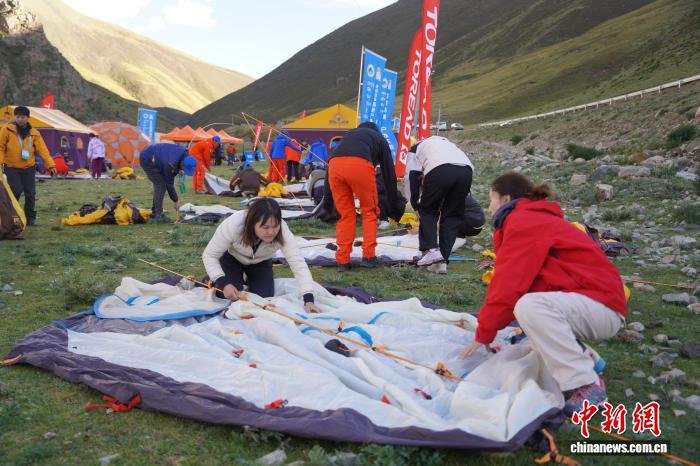 圖為徒步愛好者在楚布溝露營點(diǎn)搭帳篷。貢曲羅杰 攝