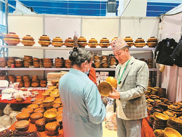 為期5天的博覽會(huì)現(xiàn)場(chǎng)熱鬧非凡。入口處,紅底黃字的“外貿(mào)優(yōu)品展銷”橫幅格外醒目:阿富汗商人正用不太流利的中文講解手工羊毛地毯的編織工藝;不丹展臺(tái)前,試穿傳統(tǒng)服飾的市民絡(luò)繹不絕;泰國(guó)膏藥展位的工作人員手持產(chǎn)品說(shuō)明書,耐心地向顧客介紹使用方法;印度尼西亞展臺(tái)飄來(lái)咖啡焦香與伊朗藏紅花的辛香,幾位游客正輕嗅小瓷勺中的藏紅花;一旁的巴基斯坦玉石展臺(tái)前,觀眾正用手機(jī)拍攝玉飾的水波紋路,工作人員及時(shí)遞上放大鏡并介紹:“您看這紋路,是巴基斯坦特有的礦料形成的?!彪p語(yǔ)講解聲、詢價(jià)議價(jià)聲、游客贊嘆聲交織在一起,宛如一場(chǎng)生動(dòng)的“國(guó)際市集”。