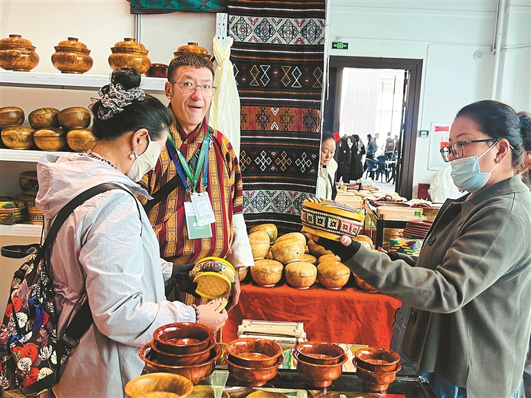 圖為市民購(gòu)買不丹竹編容器。記者 央金 攝