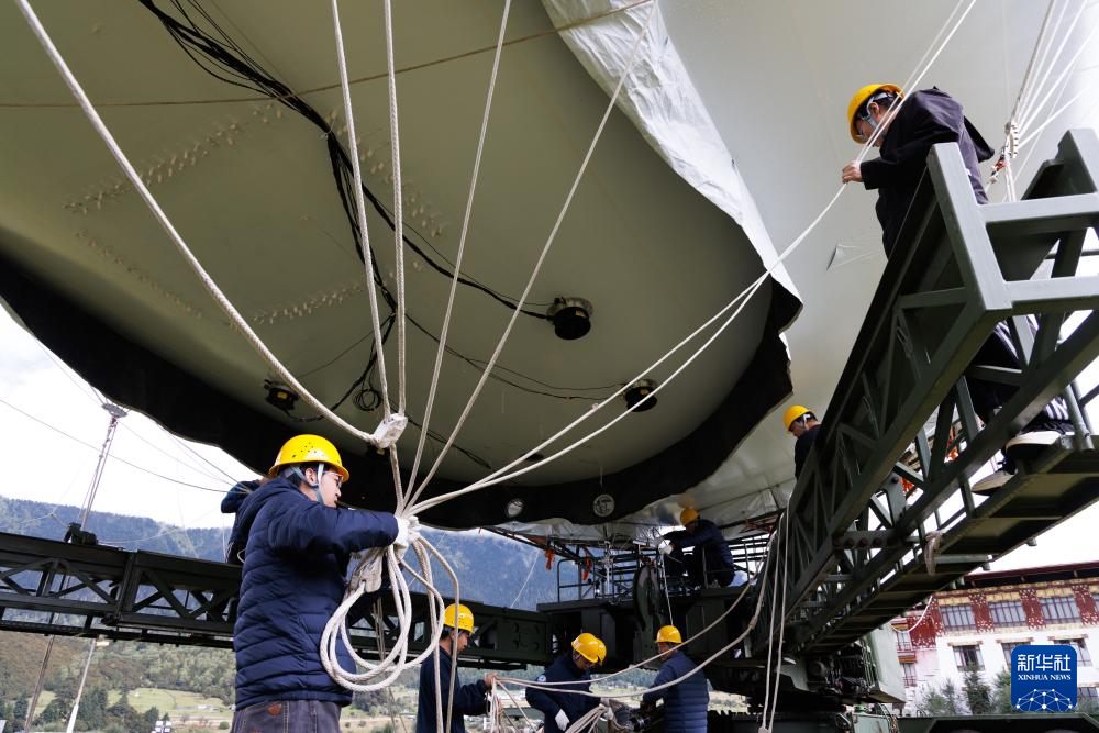 9月18日,極目一號(hào)”浮空艇大氣觀測(cè)試驗(yàn)現(xiàn)場(chǎng),科研人員在調(diào)試觀測(cè)載荷。新華社記者 金立旺 攝