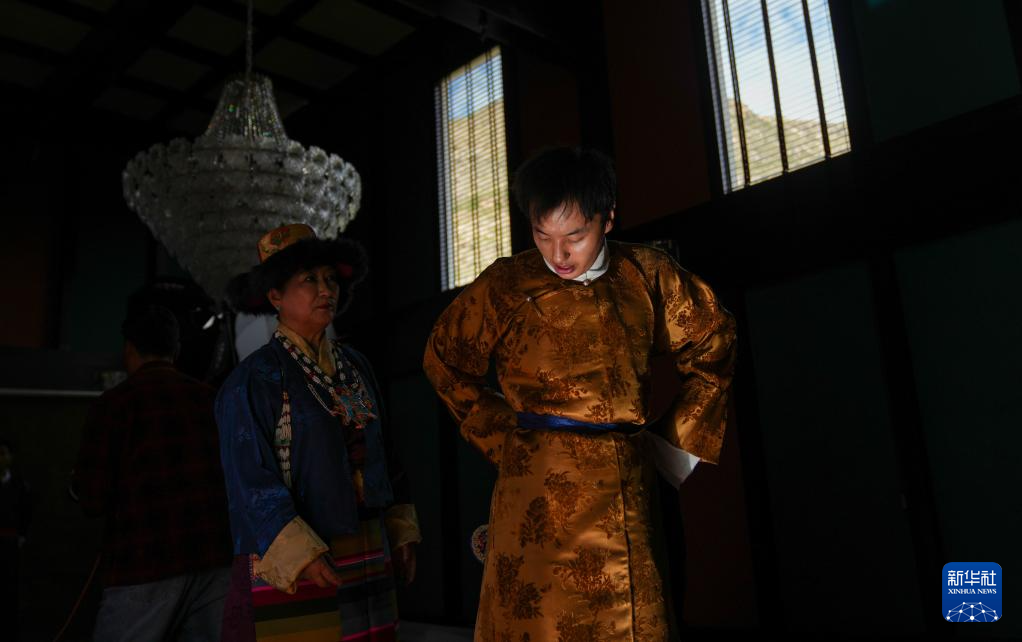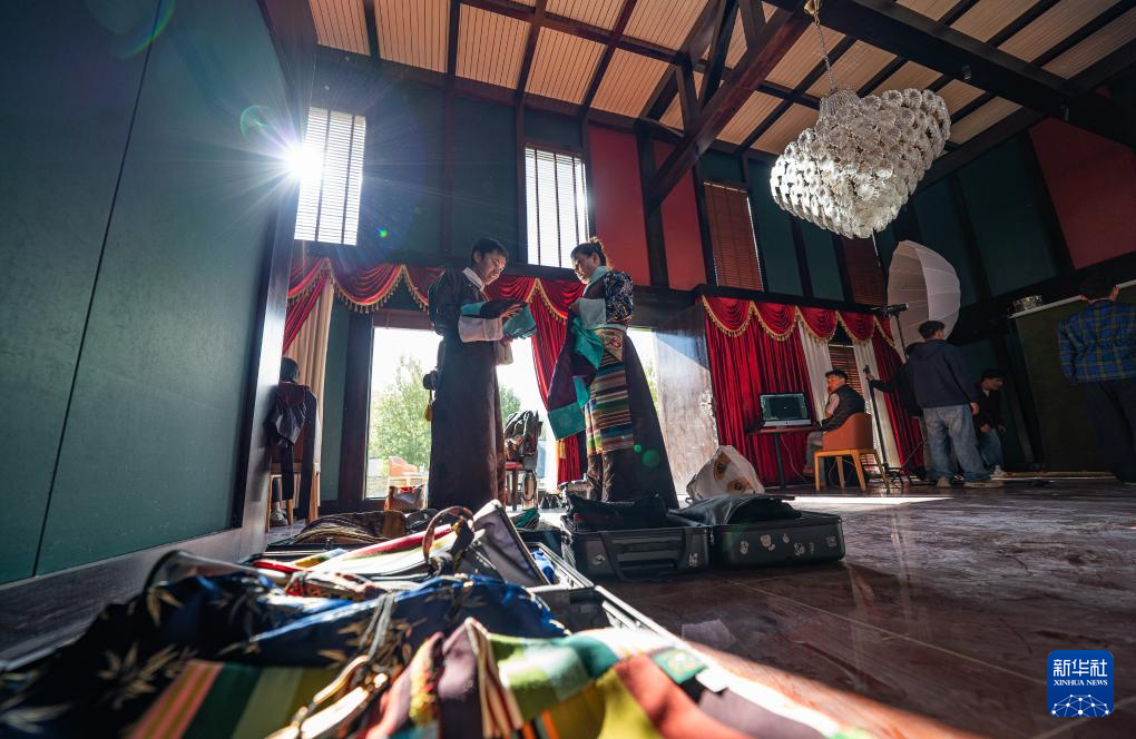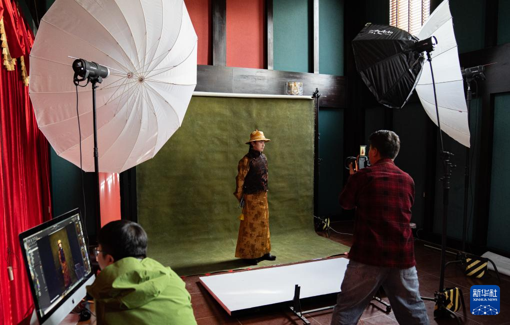 班珠丹塔身著藏裝進行棚拍(9月9日攝)。新華社記者 丁增尼達 攝??