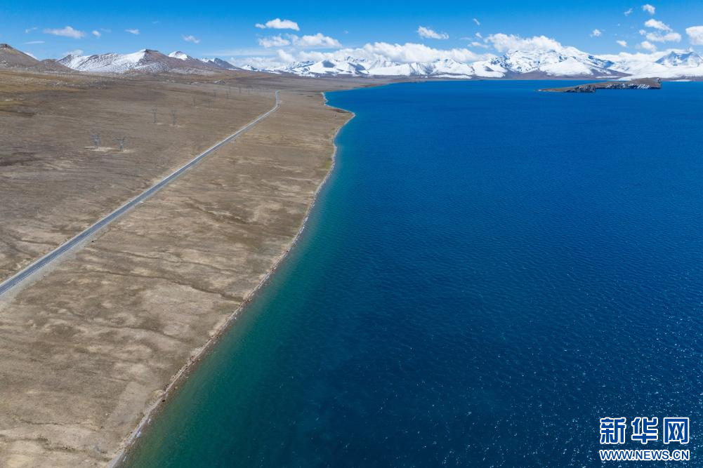 10月9日拍攝的普莫雍錯(cuò)(無(wú)人機(jī)照片)。新華網(wǎng) 旦增努布 攝