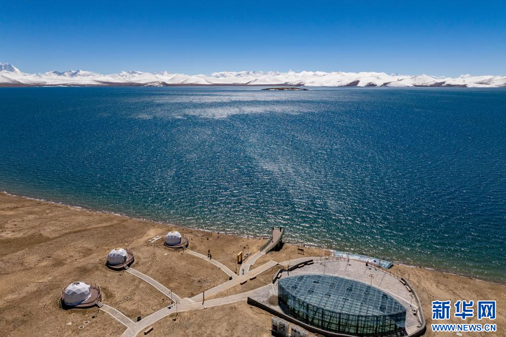 10月9日拍攝的普莫雍錯(cuò)觀景點(diǎn)(無(wú)人機(jī)照片)。新華網(wǎng) 旦增努布 攝