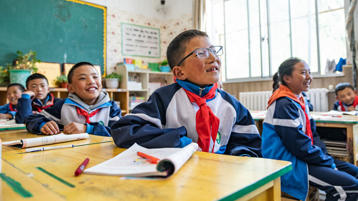 2024年9月3日,西藏林芝市工布江達(dá)縣娘蒲鄉(xiāng)中心小學(xué)五年級(jí)的學(xué)生在上課。新華社記者 丁增尼達(dá) 攝