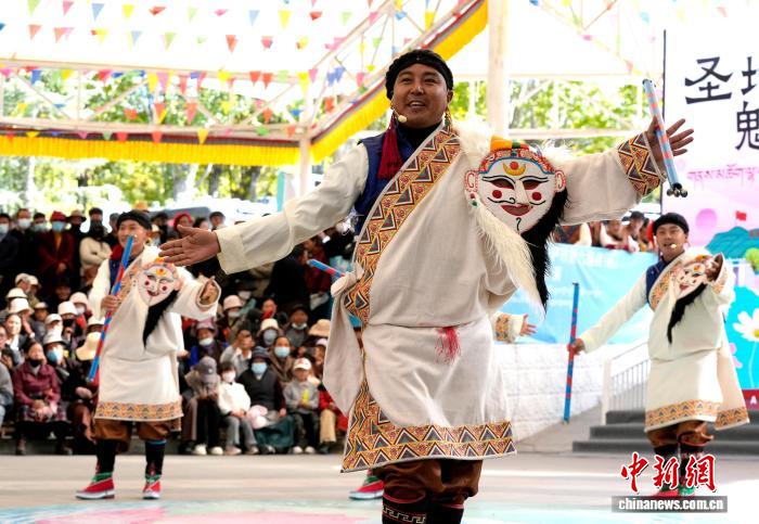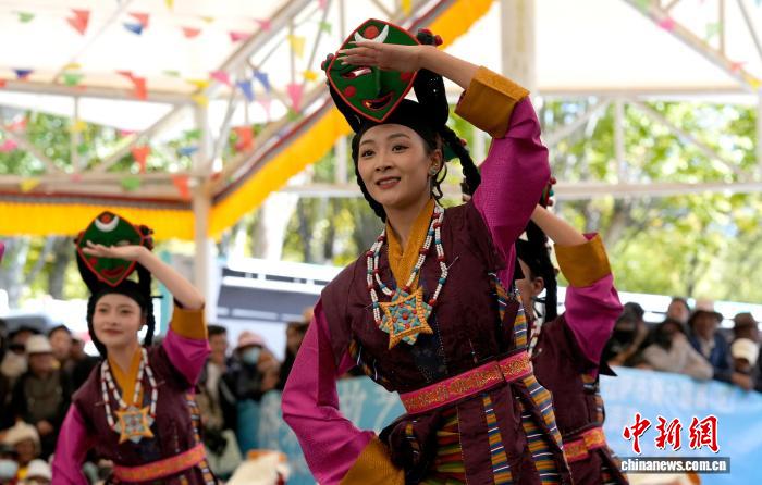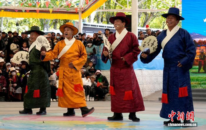 10月19日,“格?;ū崩_市第六屆縣(區(qū))藝術(shù)團(tuán)文藝調(diào)演頒獎(jiǎng)活動(dòng)在布達(dá)拉宮腳下的宗角祿康公園舉行。現(xiàn)場(chǎng),拉薩市各縣(區(qū))藝術(shù)團(tuán)帶來(lái)精彩節(jié)目。圖為文藝調(diào)演頒獎(jiǎng)活動(dòng)上的文藝表演。中新社記者 李林 攝