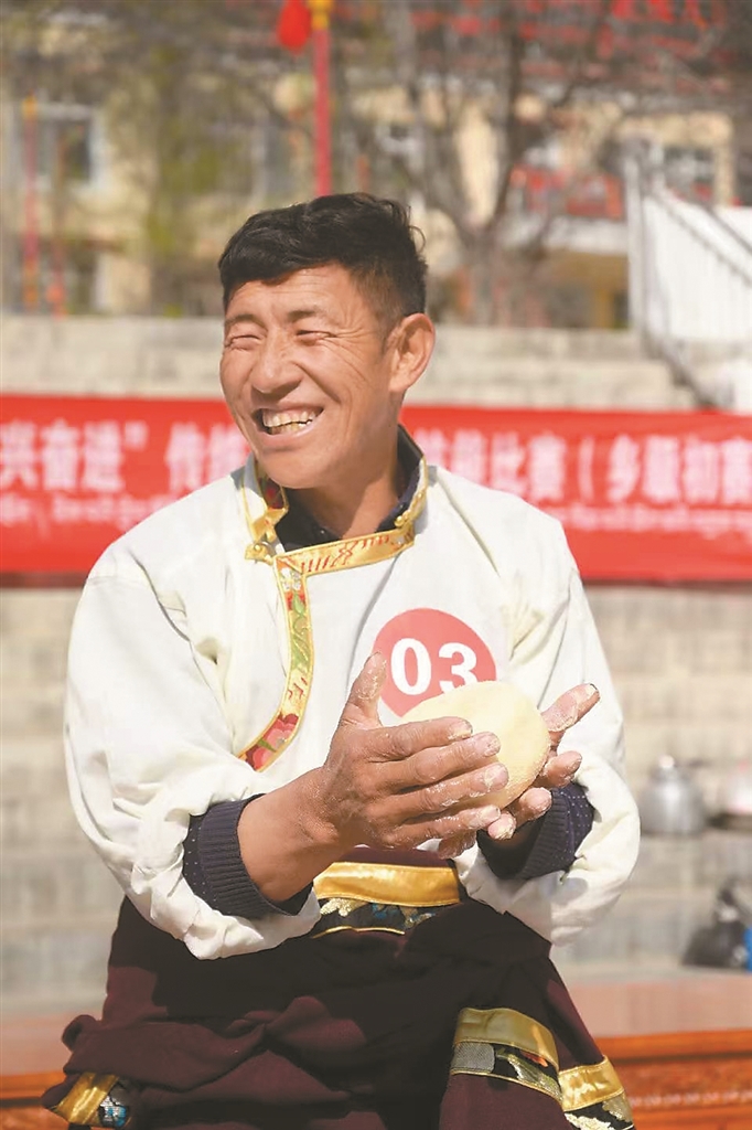 芒康縣朱巴龍鄉(xiāng)“紅色昌都 振興奮進”活動傳統(tǒng)生產(chǎn)生活技能酥油制作比賽。記者 歐珠次仁 攝