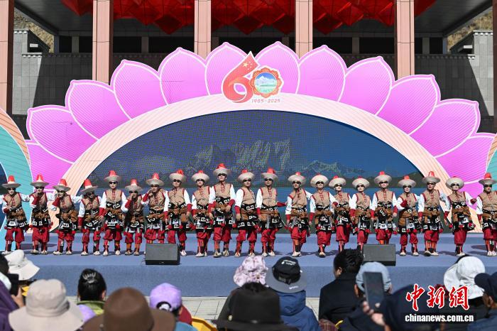 11月2日,西藏自治區(qū)“大地歡歌 格?;ㄑ莩黾尽比珔^(qū)縣(區(qū))藝術(shù)團(tuán)惠民演出活動,在拉薩市堆龍德慶區(qū)民族團(tuán)結(jié)主題公園精彩上演。據(jù)悉,此次演出由西藏自治區(qū)文化和旅游廳主辦,西藏自治區(qū)群藝館(區(qū)非遺保護(hù)中心)承辦,各市地文旅局及拉薩市堆龍德慶區(qū)委宣傳部、文旅局協(xié)辦,以展示基層文化活力、豐富民眾精神生活為核心,匯聚了西藏各縣(區(qū))藝術(shù)團(tuán)骨干力量,這些扎根鄉(xiāng)土的“文藝輕騎兵”,成為基層文化傳播的“主力軍”。圖為山南市隆子縣藝術(shù)團(tuán)表演打墻舞《扎西康?!?。中新社記者 貢嘎來松 攝