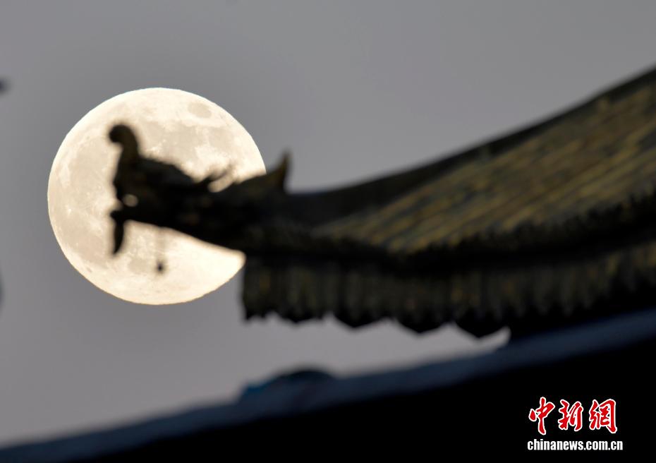 11月5日,西藏日喀則扎什倫布寺拍攝的“超級(jí)月亮”。“超級(jí)月亮”是指月球運(yùn)行到近地點(diǎn)時(shí)恰好達(dá)到滿月狀態(tài),此時(shí)月亮看起來比平時(shí)更大更亮。
