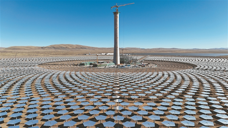 圖為那曲市安多縣帕那鎮(zhèn)土若村的“100MW光熱+800MW光伏”一體化項(xiàng)目建設(shè)現(xiàn)場(chǎng)。記者 趙書彬 攝