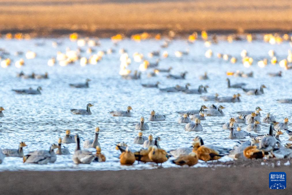 這是11月23日在西藏拉薩市林周縣拍攝的越冬候鳥。新華社記者 李鍵 攝