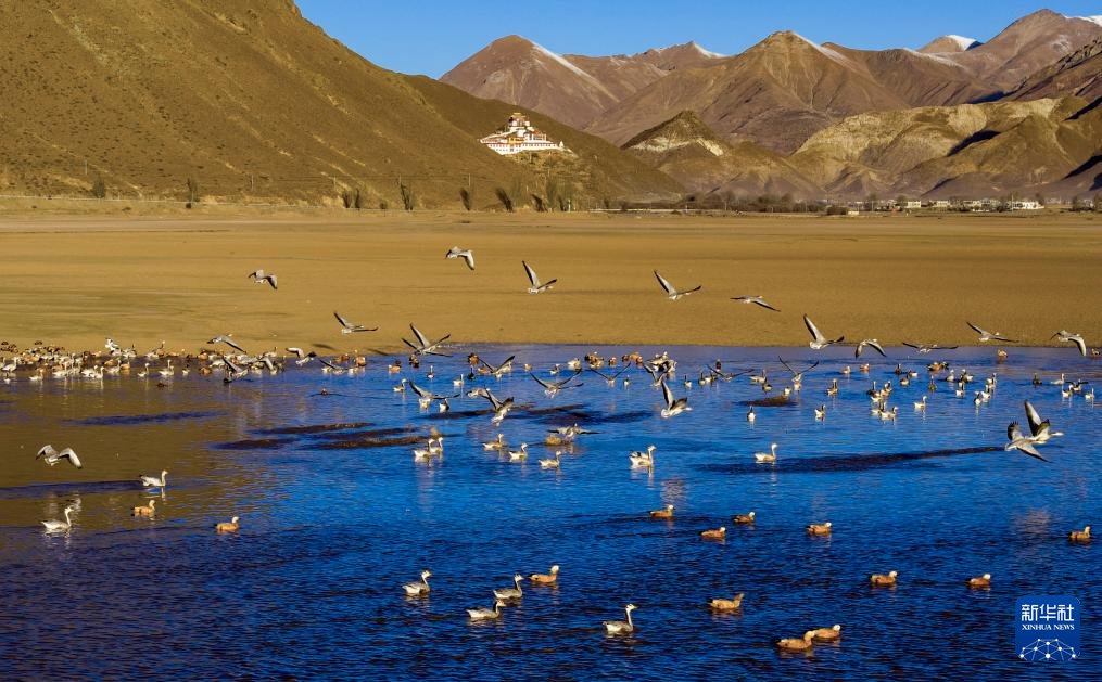 這是11月23日在西藏拉薩市林周縣拍攝的越冬候鳥。新華社記者 姜帆 攝