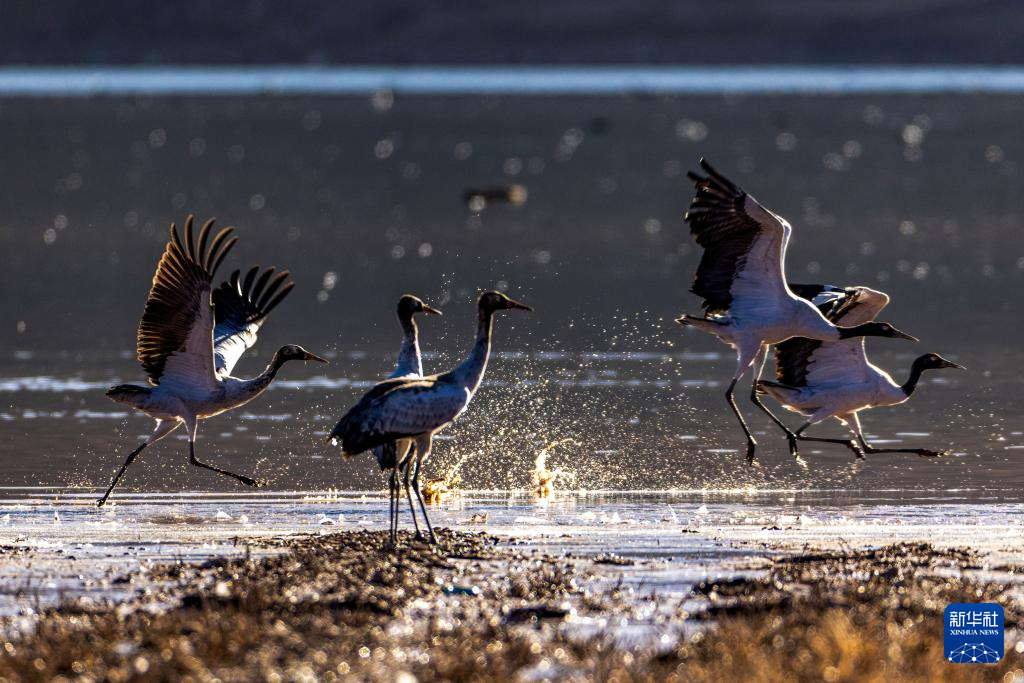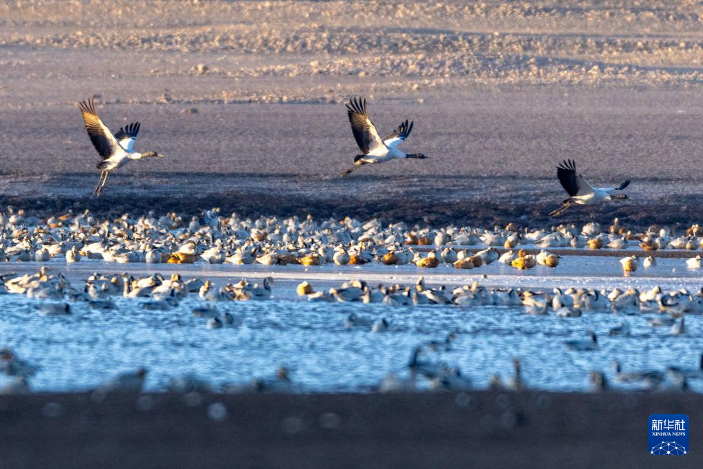 冬日時節(jié),拉薩市林周縣迎來大批越冬候鳥,黑頸鶴、斑頭雁、赤麻鴨等候鳥在河谷、湖泊等地覓食、休憩。