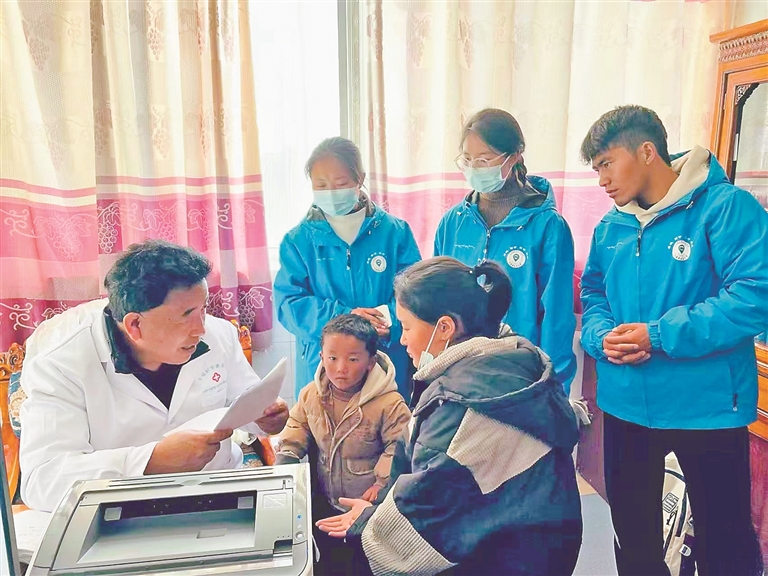 在志愿服務(wù)環(huán)節(jié)中,學(xué)生們體會(huì)到了付出的快樂(lè)。在日喀則市定日縣震區(qū)安置點(diǎn),他們消毒防疫、發(fā)放藥品、疏導(dǎo)群眾情緒;在鄉(xiāng)村社區(qū),他們?yōu)榇迕駵y(cè)量血壓、普及健康常識(shí)、設(shè)置手機(jī)地震預(yù)警;在知識(shí)小課堂上,為學(xué)生補(bǔ)課輔導(dǎo)、開(kāi)展環(huán)保宣傳。這些看似瑣碎的小事,讓他們切實(shí)感受到了學(xué)醫(yī)者的社會(huì)價(jià)值,也錘煉了他們溝通協(xié)作、應(yīng)急應(yīng)變的實(shí)戰(zhàn)能力。