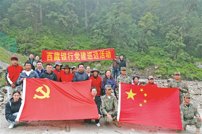 圖為西藏銀行與洛扎縣拉郊鄉(xiāng)開展黨建巡邊活動。