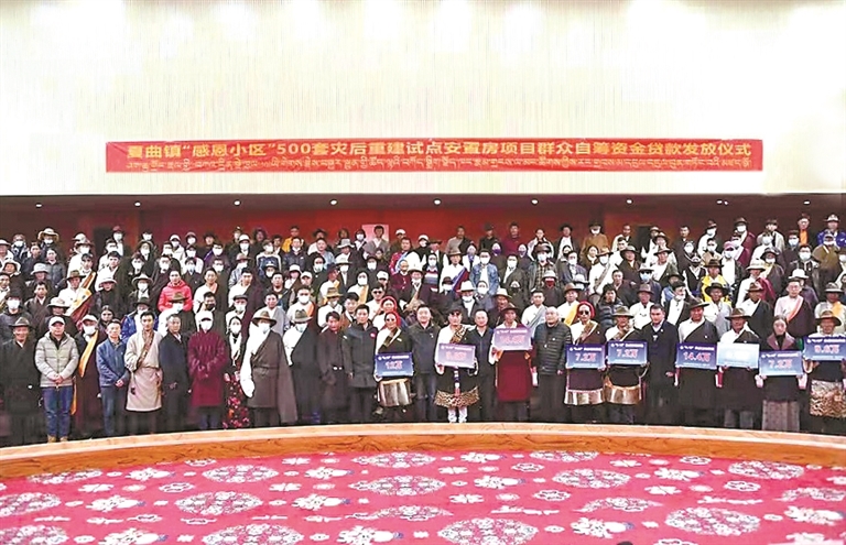 圖為西藏銀行為夏曲鎮(zhèn)受災(zāi)群眾發(fā)放貸款,幫助群眾重建家園。