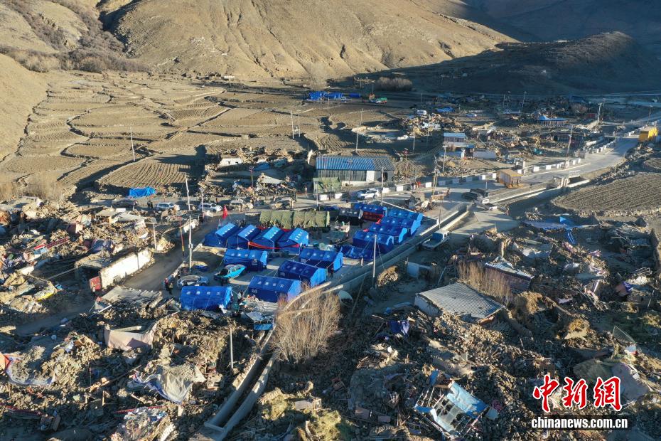 2025年1月7日,西藏日喀則市定日縣發(fā)生6.8級(jí)地震,造成重大人員傷亡。地震發(fā)生后,30天內(nèi)完成民房重建規(guī)劃、選址、設(shè)計(jì),90天內(nèi)完成災(zāi)后恢復(fù)重建總體方案編制和報(bào)審,震后100天內(nèi)進(jìn)入項(xiàng)目全面實(shí)施階段,220天實(shí)現(xiàn)災(zāi)后恢復(fù)重建首批入住目標(biāo),295天實(shí)現(xiàn)重建民房、維修加固民房基本建成并交付受災(zāi)民眾,在海拔4300米以上極度缺氧、建材短缺、施工力量薄弱的地震災(zāi)區(qū),創(chuàng)造了“當(dāng)年受災(zāi)、當(dāng)年入住”的重建奇跡。如今,民眾生產(chǎn)生活恢復(fù)秩序,他們將在新居內(nèi)迎接第一個(gè)日喀則農(nóng)事新年。圖為2025年1月8日,西藏自治區(qū)定日縣長(zhǎng)所鄉(xiāng)古榮村,安置點(diǎn)的帳篷。(無(wú)人機(jī)照片)貢嘎來(lái)松 攝