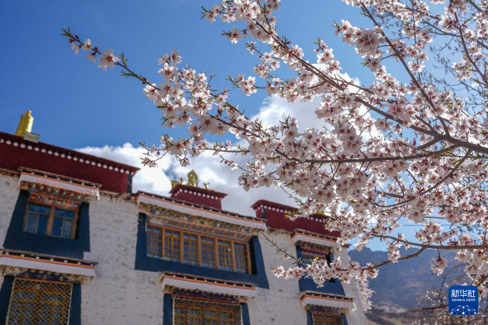 拉薩古剎帕崩崗周圍桃花盛開(4月5日攝)。新華社記者 旦增尼瑪曲珠 攝