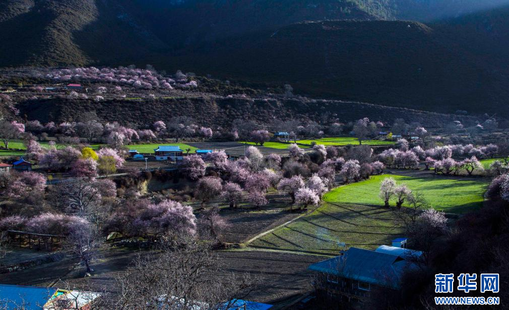 圖為波密縣扎木鎮(zhèn)單卡村內(nèi)拍攝的灼灼桃花。新華網(wǎng)發(fā) 阿旺仁青 攝