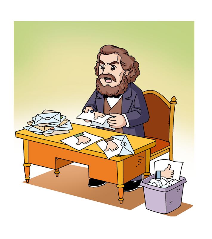 馬克思在一封信里說(shuō):“由于厭惡一切個(gè)人崇拜,在國(guó)際存在時(shí)期,我從來(lái)不公布那許許多多來(lái)自各國(guó)的、使我厭煩的歌功頌德的東西;我甚至從來(lái)不予答復(fù),偶爾答復(fù),也只是加以斥責(zé)?!?蘇凝/畫