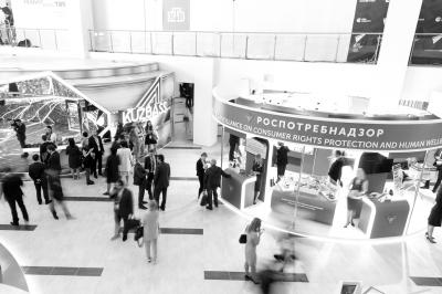 9月11日,俄羅斯符拉迪沃斯托克,人們在參觀東方經(jīng)濟論壇上的展位。新華社發(fā)