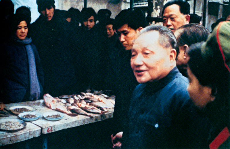 1983年2月,鄧小平同志視察上海市靜安區(qū)膠州路農(nóng)貿(mào)市場。