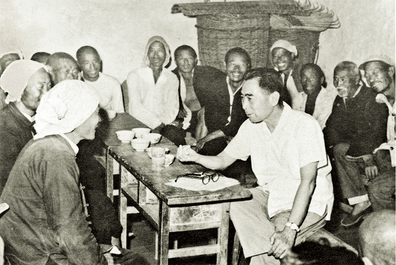 1961年5月,周恩來同志帶領(lǐng)工作組在河北邯鄲農(nóng)村調(diào)查。