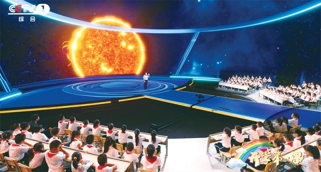 2023年《開學(xué)第一課》以“強(qiáng)國復(fù)興有我”為主題,從傳統(tǒng)文化、文明探源、生態(tài)文明、鄉(xiāng)村振興、國防教育、科技創(chuàng)新等多個(gè)方面,全景展示中國式現(xiàn)代化的萬千氣象。圖為中國科學(xué)院高能物理研究所研究員、“拉索”(LHAASO)首席科學(xué)家曹臻在向同學(xué)們介紹世界上海拔最高、規(guī)模最大的宇宙射線觀測(cè)裝置“拉索”的前世今生。 教育部供圖