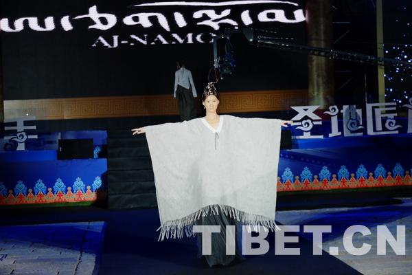 AJNAMO品牌服裝秀是此次巡展活動的首場藏裝T臺秀。為參加此次巡展,知名藏族歌手、登上國際時裝周的少數(shù)民族設(shè)計師阿佳娜姆,帶來了自己親手設(shè)計的40多套藏族服飾,以高原紅、哈達白與牦牛黑來詮釋藏族服飾。