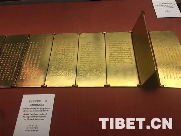 圖為西藏文化博物館的展品“道光皇帝冊封十一世達賴喇嘛之金冊”,原件藏于西藏博物館。攝影:白一宏