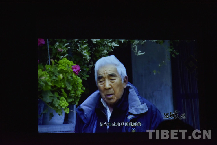 圖為第十八屆“第三極”中國(guó)西藏登山大會(huì)系列活動(dòng)之一戶外運(yùn)動(dòng)文化互動(dòng)夜上播放的西藏登山專題片《逐夢(mèng)云端》畫(huà)面 攝影:王媛媛