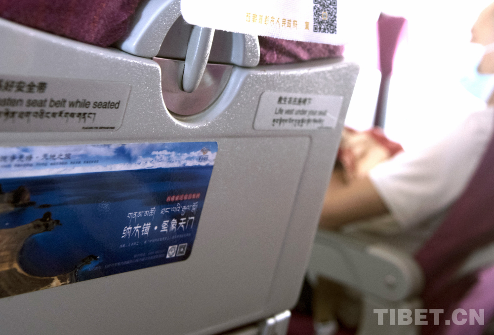 這是在西藏航空公司執(zhí)飛的客機(jī)艙座后所張貼的“圣象天門”招貼圖(唐召明2020年8月17日攝)