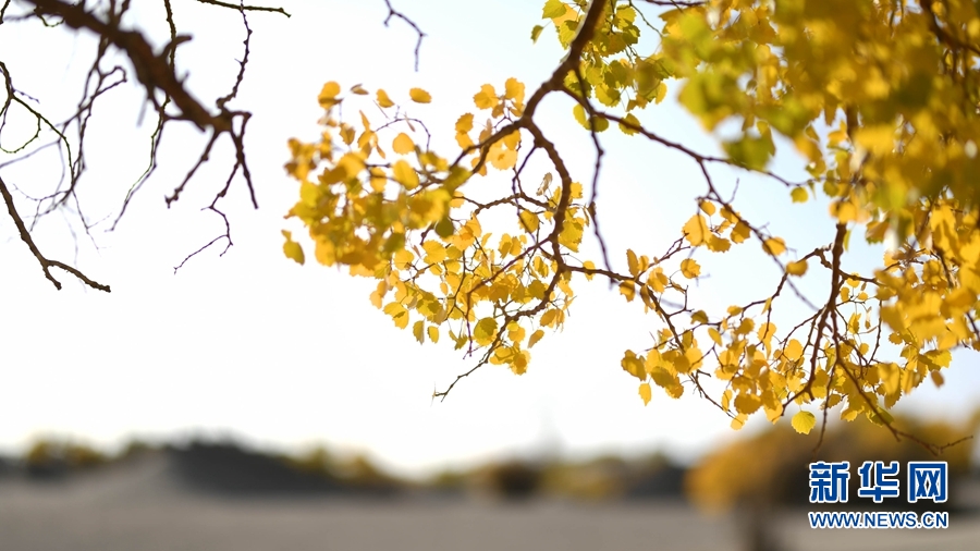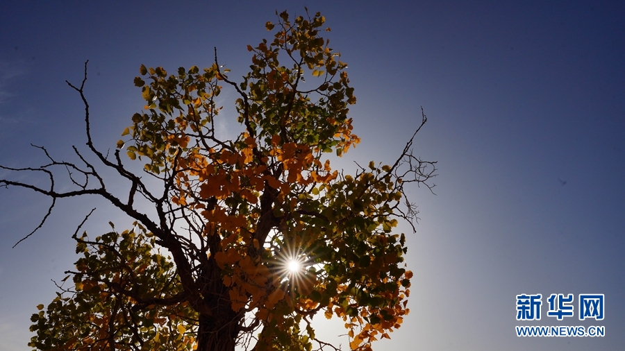 胡楊的葉子在陽光的照射下熠熠生輝。新華網 潘彬彬 攝