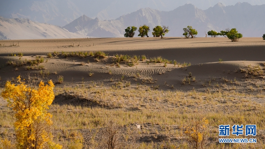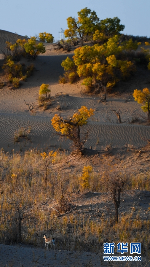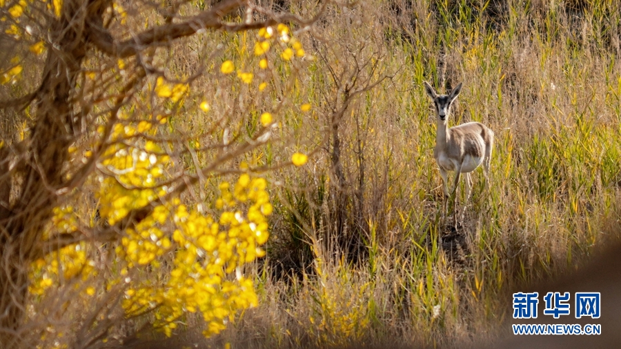 一只鵝喉羚在胡楊林內活動。新華網 潘彬彬 攝