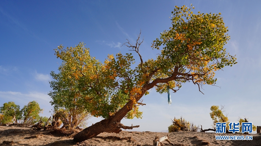 生命力頑強的胡楊為荒漠增添了勃勃生機。新華網 潘彬彬 攝
