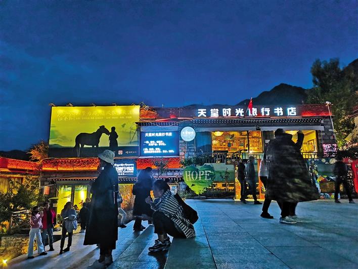 如今,拉薩除了布達拉宮、大昭寺……文成公主劇場及所在地慈覺林已然成為拉薩必游的又一新的打卡點。傍晚的慈覺林也因為文成公主而熱鬧非凡,雖然國慶黃金周已過,但是文成公主劇場前仍人潮涌動,游客、市民在這里欣賞美景、駐足,流浪歌手在這里熱情獻唱,小販的吆喝聲不斷,路邊的店鋪燈火通明,好不熱鬧。(記者 黃志武 見習記者 格桑央珍 桑吉 楊曦婷 攝)