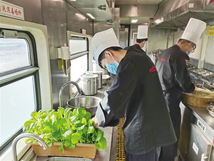 據(jù)了解,新鮮蔬菜現(xiàn)采現(xiàn)吃的用餐方式為旅客的長(zhǎng)途旅行帶來(lái)更多新鮮感,趣味與美味有機(jī)結(jié)合,更添一份樂(lè)趣,在一定程度上,也可以減少菜品餐料的浪費(fèi)。目前,多趟進(jìn)藏旅客列車都有這項(xiàng)服務(wù)。