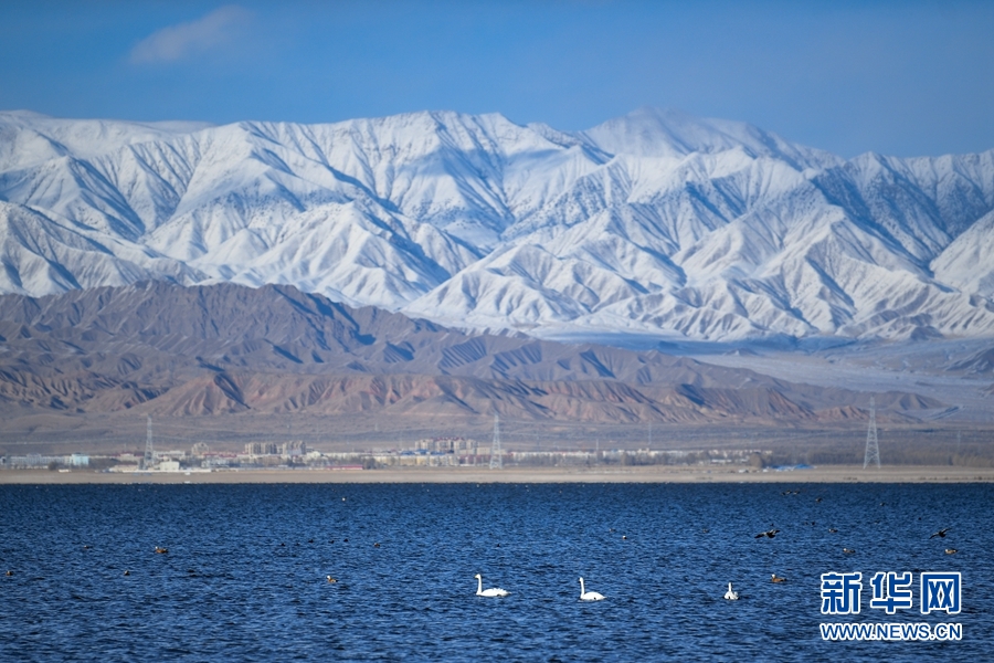 大天鵝、赤麻鴨在都蘭湖游弋。(11月21日攝)新華網(wǎng) 潘彬彬攝
