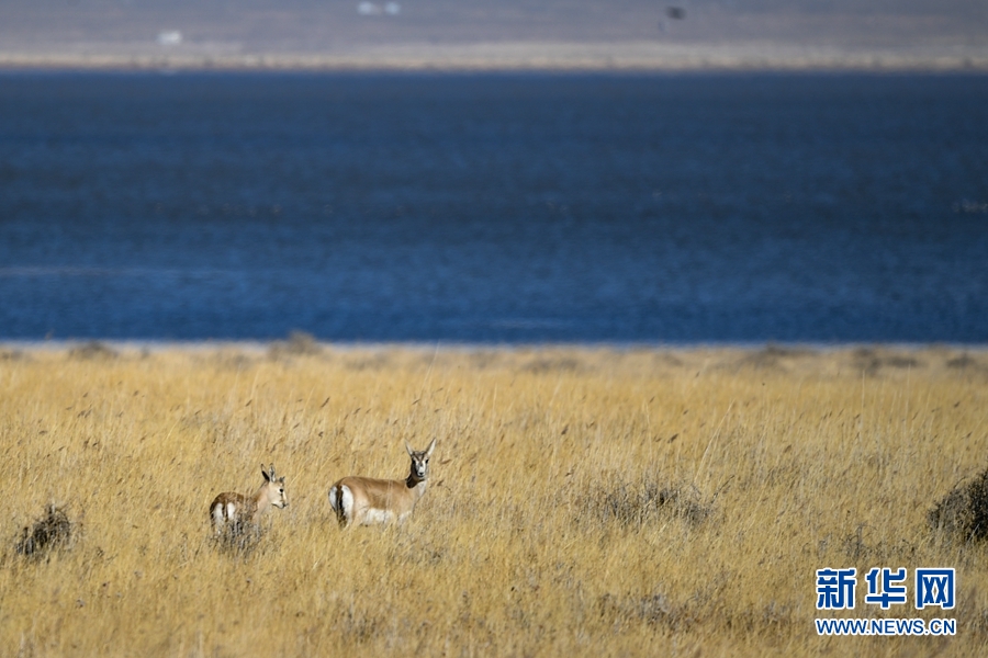 在都蘭湖國家濕地公園內(nèi)拍攝到的鵝喉羚。(11月21日攝)新華網(wǎng) 潘彬彬攝