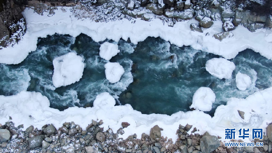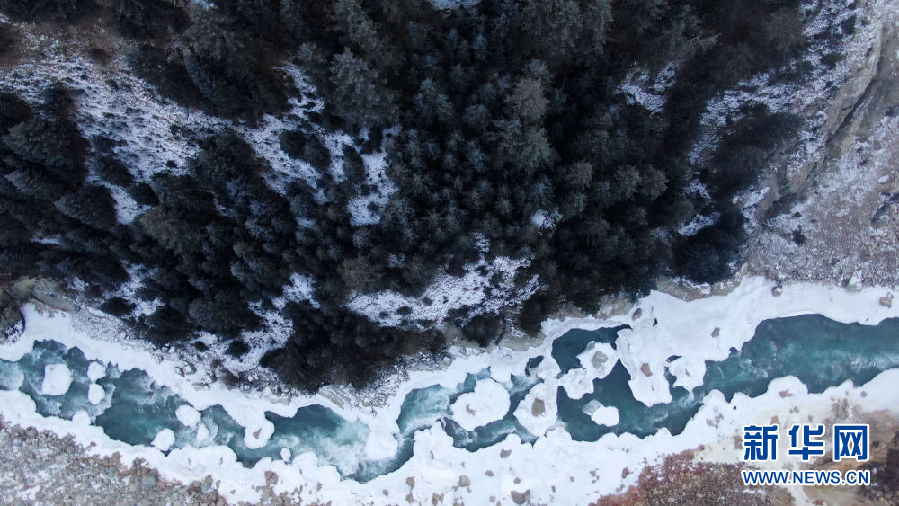 青海省祁連縣境內(nèi)的黑河峽谷風(fēng)光(12月10日攝,無(wú)人機(jī)照片)。新華社記者 張宏祥 攝
