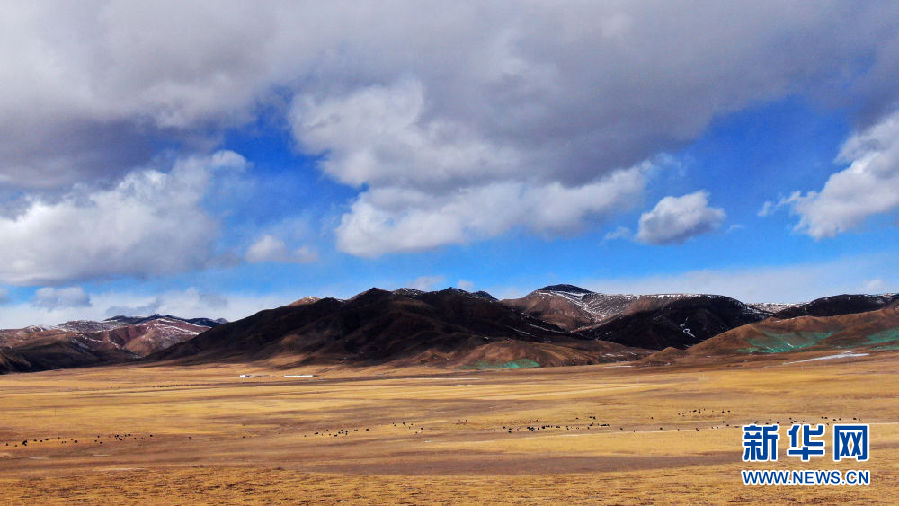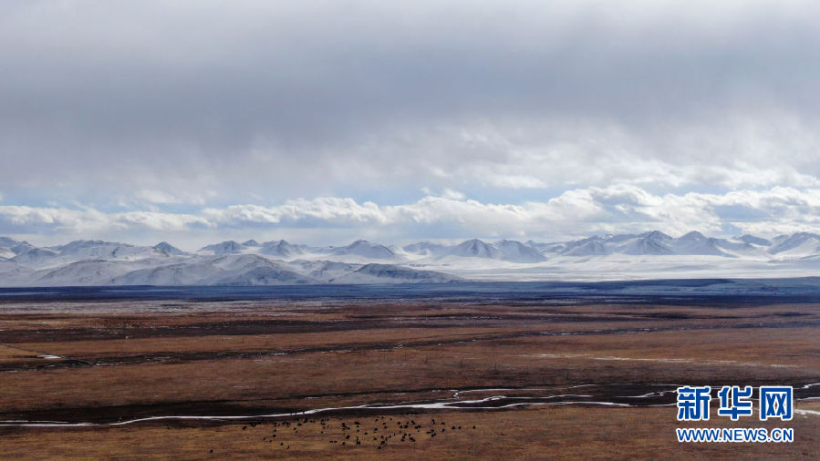 在青海省祁連縣,一群牦牛在草原上活動(dòng)(12月10日攝,無(wú)人機(jī)照片)。新華社記者 張宏祥 攝