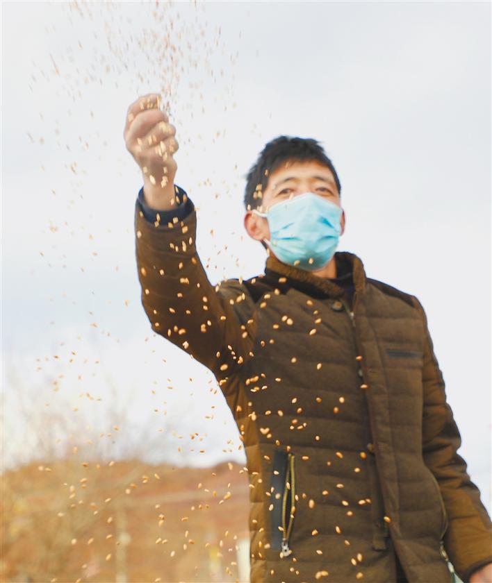 巡護員多布杰為棲息在林周縣境內(nèi)的候鳥投食。