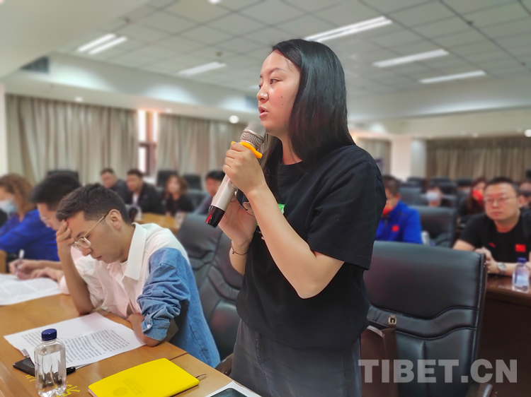 圖為2022環(huán)拉薩城自行車大賽新聞發(fā)布會(huì)現(xiàn)場西藏商報(bào)記者在提問 攝影:拉姆