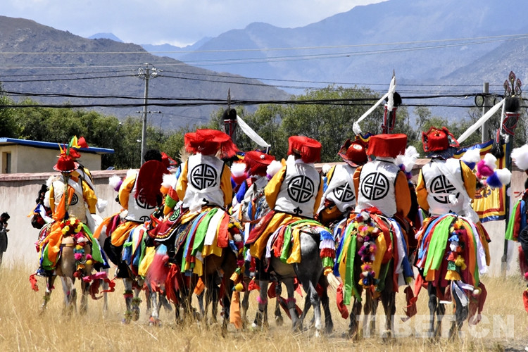 “望果節(jié)”從遠古走來,是西藏人民敬畏自然、禮贊生命、寄托祝福的節(jié)日?!袄怠蓖?,騎手們和村里德高望重的老人們正在吟唱古老的民歌,祈求風(fēng)調(diào)雨順、莊稼豐收。一聲“杰杰嗦嗦,拉嗦啰”后,糌粑粉被高高拋撒,騎手們即將出發(fā)。